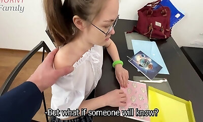 Oh no! Teen damsel Schoolgirl discovers her sister fucking with her stepfather when she gets home
