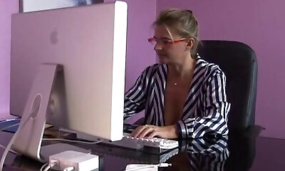 The couple has an amazing sex with a mind-blowing blondie wearing glasses