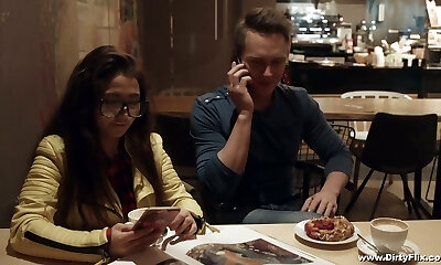 Nerdy brunette in glasses Little Candy is fucked hard by crazy fellow