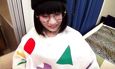 Very beautiful woman trap glasses nerd anal dildo wanking