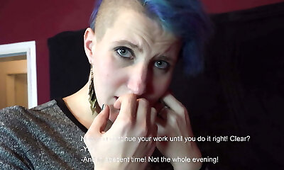Busty Emo Mistress is milking her manservant dry of his semen