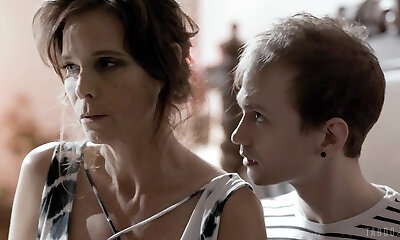 Filthy MILF Slut Red pulls a very busty brunette for hump