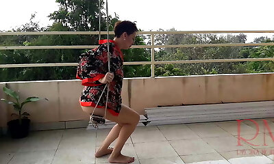 Super-cute housewife has fun without panties on the swing Slut swings and shows her perfect pussy 1