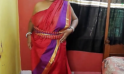 Indian sizzling mom flashing her juicy pussy in red sharee