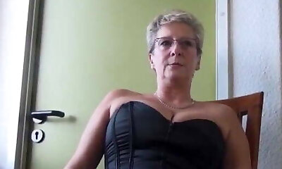 Glamorous cougar with big tits in glasses giving big spear titjob