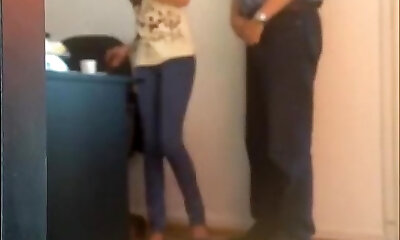 pomocnik złapał kolegę ssać starszy menedżer pod stołem