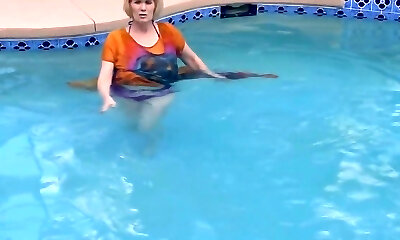 Curvy Alison swims and wanks in the pool