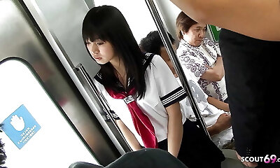 censored gentle ass asian schoolgirl shag on train&cum on ass