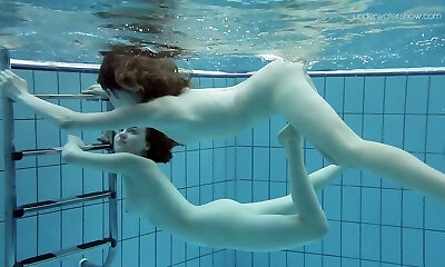 Cute teen lady Anna Netrebko swims naked with her GF