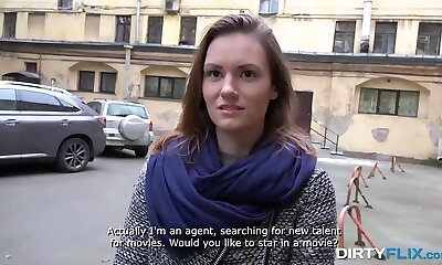 A bit shy and awkward Russian girl Manya Churikova exposes her cock-squeezing pink slit