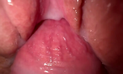 Slow maneuverability. Close-up of gentle frictions - Extremily close-up pussyfucking. Macro Creampie