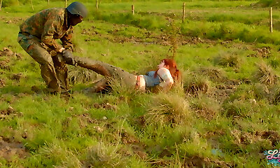 Ultra-kinky cutie caught in the woods by border patrol and is fucked
