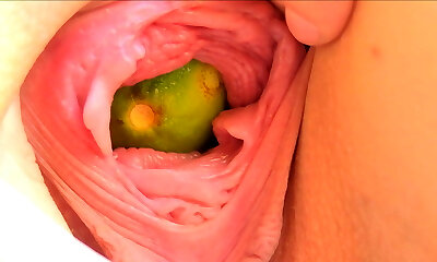 Cocky Slut Thrusts A Large Cucumber Deep Into Her Pulsating Snatch