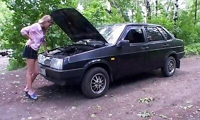 bionda bi-atch dà un super-caldo sensuale blowage per il suo beau nella sua auto e bevande palla di burro