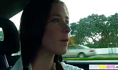 fit teen implora per il suo cazzo all'aperto dopo masturbazione con la mano in auto