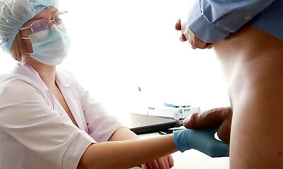 Sexy nurse does prostate rubdown and milks the manmeat in sexy uniform